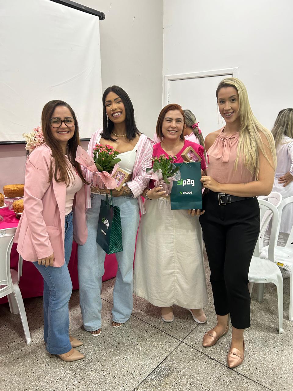 Ao final, Elisângela agradeceu as convidadas e aos parceiros, Banco SICOOB, com a distribuição de vouchers para exames gratuitos de mamografia, e a empresa Nala Cosméticos, pelos brindes para as convidadas.