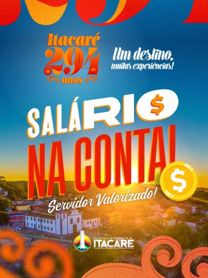 Antecipando as comemorações pelos 294 anos de emancipação política de Itacaré, celebrados no próximo dia 26, a Prefeitura realizou, nesta sexta-feira, dia 23, o pagamento integral e antecipado dos salários de todos os servidores públicos municipais efetivos e contratados.